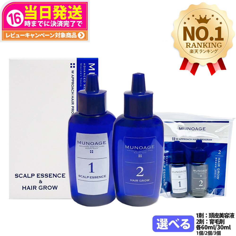 一方、ミューノアージュは、1剤の頭皮美容液と2剤の薬用育毛剤を使う2ステップケア。